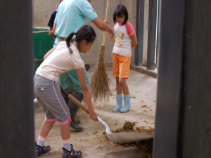 こうして、約30分間、広いゾウの部屋をそうじしたら、においもとれて、きれいになりました。ゾウも気持ち良くなってくれたでしょう。