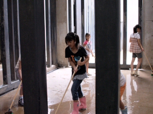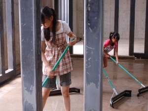 ゾウの部屋は、学校の教室くらいあり、照明はなく、太陽の光だけで暮らしています。そして、とても臭く、地面はアスファルトにどろまみれといった、きたない部屋でした。私たちは、さっそくゾウの部屋のそうじをすることにしました。