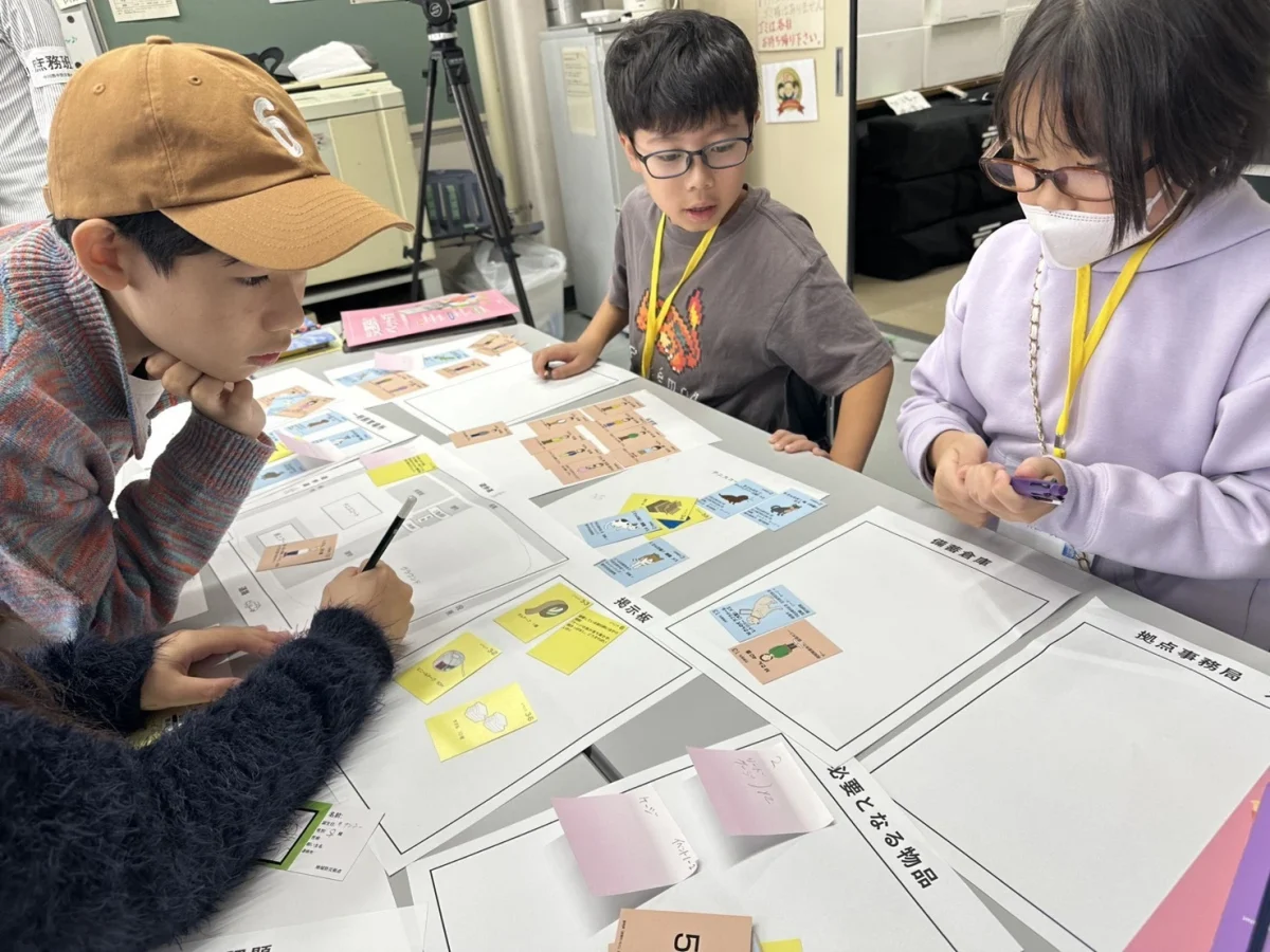 ペット防災HUGゲーム(避難所運営ゲーム)も体験しました。そのゲームは、避難所に来る人たちをどこに避難させるか振り分けるゲームです。避難所は人がどんどん来るので、いろいろな人が来て大変でした。動物アレルギーの方だったり、日本語が通じない方などの対応に困り、むずかしかったです。